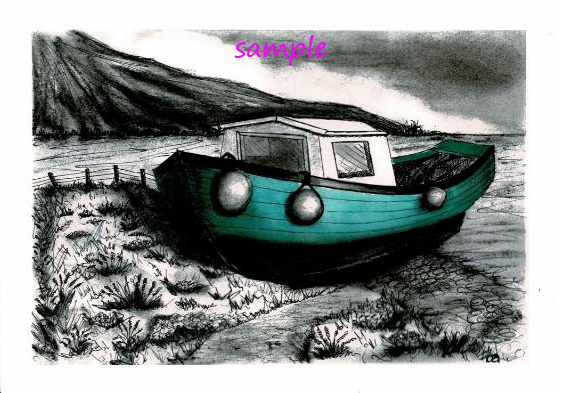 In this collection, I have explored Scotland’s moody landscapes with mixed media, including pen and charcoal. A splash of a single colour has been used in each print to describe the striking drama of Scotland’s landscapes.