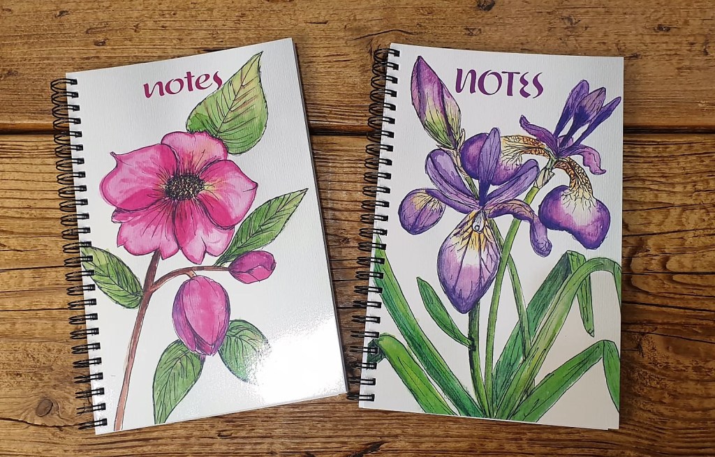 2 NOTEPADS – 1 PURPLE IRIS and 1 PINK HELEBORE
